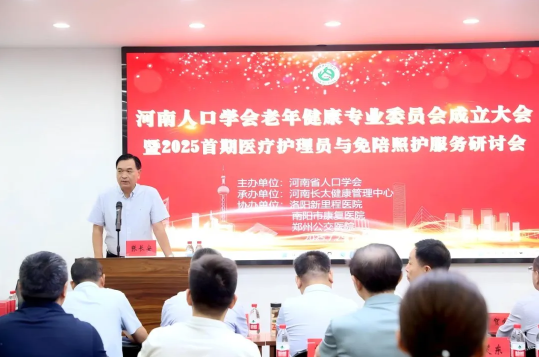 7月25日,由河南省人口學會主辦,河南長太健康管理中心承辦的河南省人口學會老年健康專業(yè)委員會成立大會暨 2025 年首期醫(yī)療護理員與免陪照護服務高峰論壇在鄭州召開。