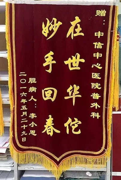 “為確保手術(shù)萬無一失,術(shù)前,我們多次組織相關(guān)科室技術(shù)骨干會診、術(shù)前討論,并制定了詳盡的手術(shù)方案及應(yīng)急預(yù)案。術(shù)后送ICU對其進(jìn)行了24小時重癥監(jiān)護(hù),恢復(fù)的非常好,比預(yù)期效果要好得多,現(xiàn)在可以出院了!睆堈窳⒃洪L說。老人緊緊握著張院長的手久久不肯松開,口中連聲說道:“謝謝!謝謝!張院長您真是我的救命恩人!”同時將一面銹有“在世華佗,妙手回春”的大紅錦旗送到該科,并再次對我院普外科醫(yī)護(hù)人員高尚的醫(yī)德、精湛的技術(shù)、體貼的服務(wù)表示感謝。