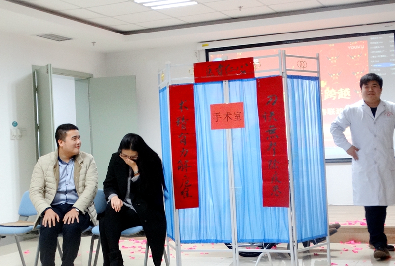 院長王德首先發(fā)表熱情洋溢的新年致辭,并祝愿大家新年快樂,預(yù)祝晚會圓滿成功。伴隨著開場曲熱烈喜慶的節(jié)奏,聯(lián)歡會拉開了序幕。歌曲《父親》宛轉(zhuǎn)悠揚(yáng);泌尿外科的《三句半》一亮相,歡樂的笑聲頓時溢滿全場;互動游戲《蘿卜蹲》、《你來比劃我來猜》、《夾氣球》洋溢著青春的活力,展現(xiàn)了員工豐富多彩的文化生活;歌曲《春暖花開》飽含深情,把心中最美的歌獻(xiàn)給醫(yī)務(wù)工作者,婉約、唯美,鋪開一幅彩色的畫卷,表達(dá)了對春的期盼;孕婦瑜伽表演,靈動、靜美,展示了我院婦產(chǎn)科別樣的風(fēng)采;脫口秀表演,楊勇主任流利的言語,將自己的夢演繹得淋漓盡致;歌曲《天若有情》和《最長的電影》唱出了我院年輕員工的心聲,表達(dá)了全體職工立足本職做貢獻(xiàn),凝心聚力結(jié)碩果,砥礪奮進(jìn)創(chuàng)佳績的美好愿望;小品《365個祝!氛宫F(xiàn)了醫(yī)患溝通的工作場景,溫馨祥和。充分展示了我院醫(yī)務(wù)工作者飽滿的熱情和積極向上、團(tuán)結(jié)奮進(jìn)的精神風(fēng)貌,進(jìn)一步激發(fā)了大家愛崗敬業(yè)、團(tuán)結(jié)拼搏的工作熱情;舞蹈《歡樂跳吧》洋溢著青春的活力。最后,晚會在《難忘今宵》中圓滿落下帷幕。