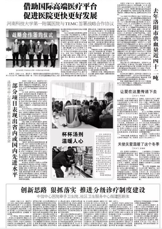 建立分級診療制度是深化醫(yī)藥衛(wèi)生體制改革的重要內(nèi)容。為認(rèn)真落實(shí)分級診療工作,建立“基層首診、分級診療、雙向轉(zhuǎn)診、急慢分治、上下聯(lián)動(dòng)”的有序就醫(yī)新格局,逐步實(shí)現(xiàn)全市醫(yī)療資源的高效利用。2016年中信中心醫(yī)院就啟動(dòng)了醫(yī)療聯(lián)合體建設(shè)工作,日前,已與洛陽九都醫(yī)院、澗西區(qū)工農(nóng)鄉(xiāng)衛(wèi)生院、西工區(qū)紅山鄉(xiāng)衛(wèi)生院、西工區(qū)洛北鄉(xiāng)衛(wèi)生院、高新區(qū)孫旗屯鄉(xiāng)衛(wèi)生院、老城區(qū)邙山鄉(xiāng)衛(wèi)生院、孟津縣麻屯鎮(zhèn)衛(wèi)生院、宜陽縣香鹿山鎮(zhèn)衛(wèi)生院、伊川縣水寨鎮(zhèn)衛(wèi)生院和宜陽縣鹽鎮(zhèn)鄉(xiāng)衛(wèi)生院以及洛陽工業(yè)園區(qū)社區(qū)衛(wèi)生服務(wù)中心、澗西區(qū)長安路社區(qū)衛(wèi)生服務(wù)中心、澗西區(qū)天津路社區(qū)衛(wèi)生服務(wù)中心、澗西區(qū)鄭州路第二社區(qū)衛(wèi)生服務(wù)中心和高新區(qū)創(chuàng)業(yè)路社區(qū)衛(wèi)生服務(wù)中心等10家基層醫(yī)院和5家社區(qū)衛(wèi)生服務(wù)中心等18家基層醫(yī)療機(jī)構(gòu)分別簽訂了《醫(yī)聯(lián)體合作協(xié)議書》,目前簽訂工作仍在繼續(xù)開展,簽訂范圍還將進(jìn)一步擴(kuò)大。