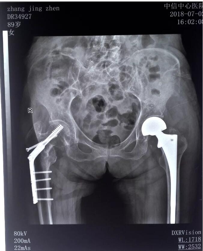 現(xiàn)年89歲的張靜珍老人,因不慎摔倒導(dǎo)致右髖部疼痛、站立受限、無法正常行走。就近急診到我院診治,X光拍片檢查顯示,右髖關(guān)節(jié)股骨頸骨皮質(zhì)不連續(xù),股骨頸骨折,并入住我院骨科治療。由于患者年事已高,對(duì)麻醉與手術(shù)的耐受性差,風(fēng)險(xiǎn)性極高。骨科主任柳順偉立即組織科室技術(shù)骨干會(huì)診、討論,很快為其制定了最佳的手術(shù)方案,精心做好各項(xiàng)術(shù)前準(zhǔn)備工作。在內(nèi)科、麻醉科等多科支持下,骨科主任柳順偉、主治醫(yī)師毛萬青、住院醫(yī)師宋羅明共同為其實(shí)施了“右股骨頸骨折人工股骨頭置換術(shù)”,整臺(tái)手術(shù)歷時(shí)90分鐘獲得圓滿成功。該手術(shù)的成功實(shí)施,再次彰顯了我院治療高齡骨折的救治實(shí)力,也體現(xiàn)出我院髖關(guān)節(jié)置換術(shù)單病種質(zhì)量管理工作的規(guī)范有序。