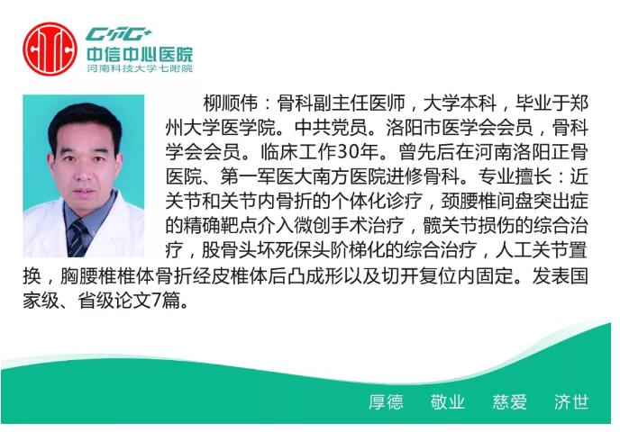 爽朗的笑容、專業(yè)的知識(shí)和睿智的語言,感染著每位患者,傳遞著戰(zhàn)勝病魔的強(qiáng)大自信心,讓每位前來就醫(yī)的患者對(duì)未來的生活充滿了希望,這就是我院骨科主任柳順偉,他的笑容、他的知識(shí)、他的語言,更深記他為病患無悔奉獻(xiàn)的強(qiáng)大精神。