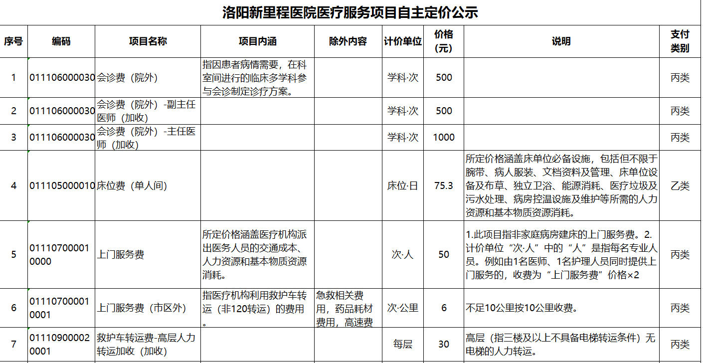 洛陽新里程醫(yī)院醫(yī)療服務(wù)項(xiàng)目自主定價(jià)公示